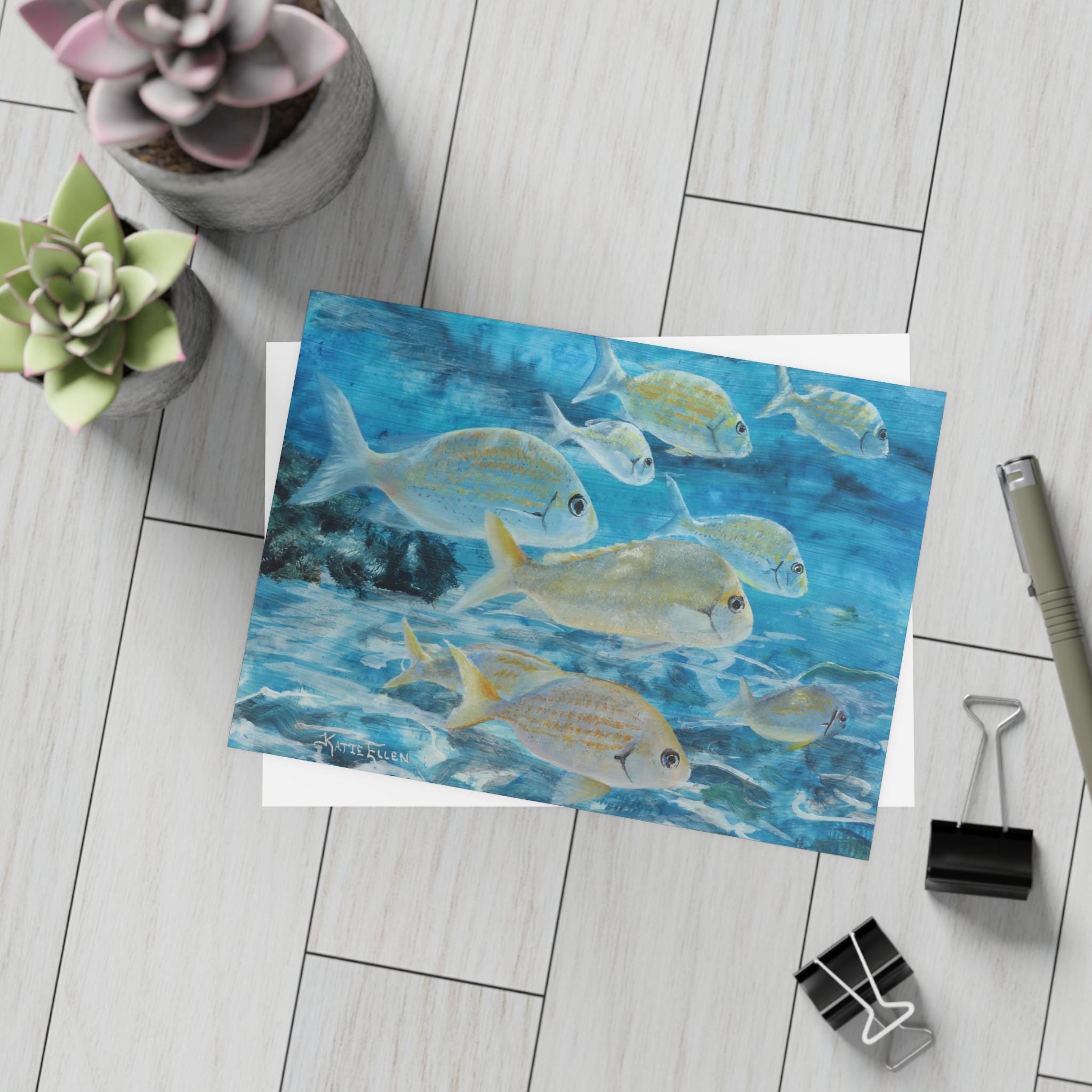 Each underwater-themed print is a 5"x7" reproduction of one of my original oil paintings, printed on 230gsm archival quality paper, ready to frame, scrapbook, collage...whatever sparks your inspiration! I sign and date every print by hand and include a little note reflecting on my process or the story behind that month's painting. There may sometimes be little surprises snuck into the envelopes!